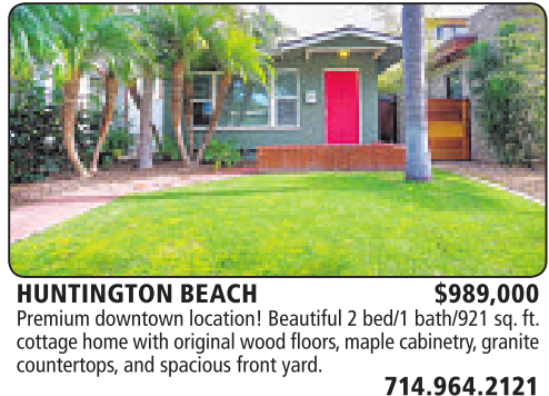 HUNTINGTON BEACH $989,000 Premium downtown location! Beautiful 2bed/1 bath/921 sq. ft. cottage home with original wood floors,maple cabinetry,granite countertops, and spacious front yard.