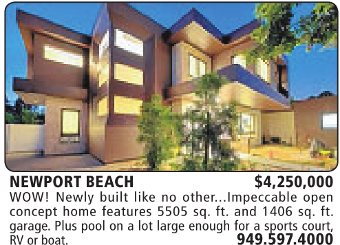 NEWPORT BEACH $4,250,000 WOW! Newly built like no other...Impeccable open concept home features 5505 sq. ft. and 1406 sq. ft. garage. Plus pool on a lot large enough for a sports court, RV or boat. 949.597.4000
