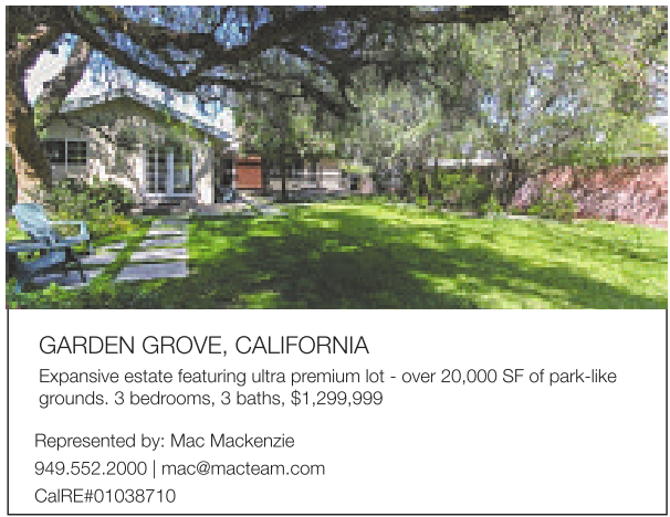 GARDEN GROVE, CALIFORNIA Expansive estate featuring ultra premium lot -over 20,000 SF of park-like grounds. 3bedrooms, 3baths, $1,299,999