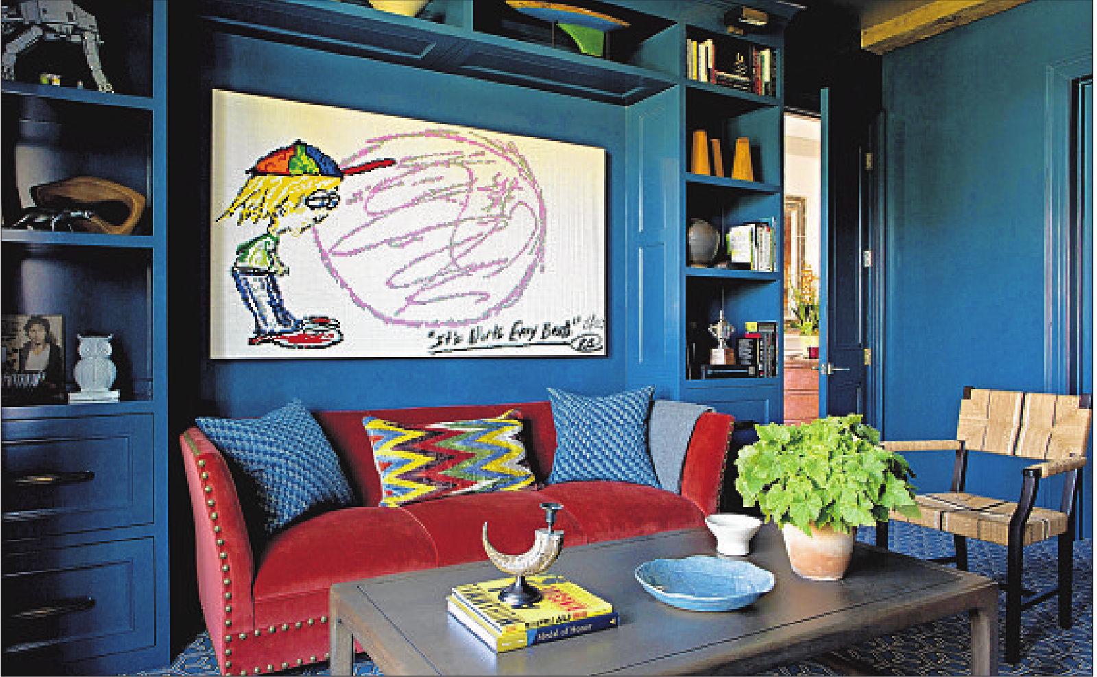 Custom-built for Brown and his family four years ago by Matt Morris Development, the East Coast-vibe traditional home is full of character and color. Vibrant wallcovering, detailed millwork and bright accent pieces create visual interest from room to room. Acustom mudroom scores style points with a row of individual lockers.