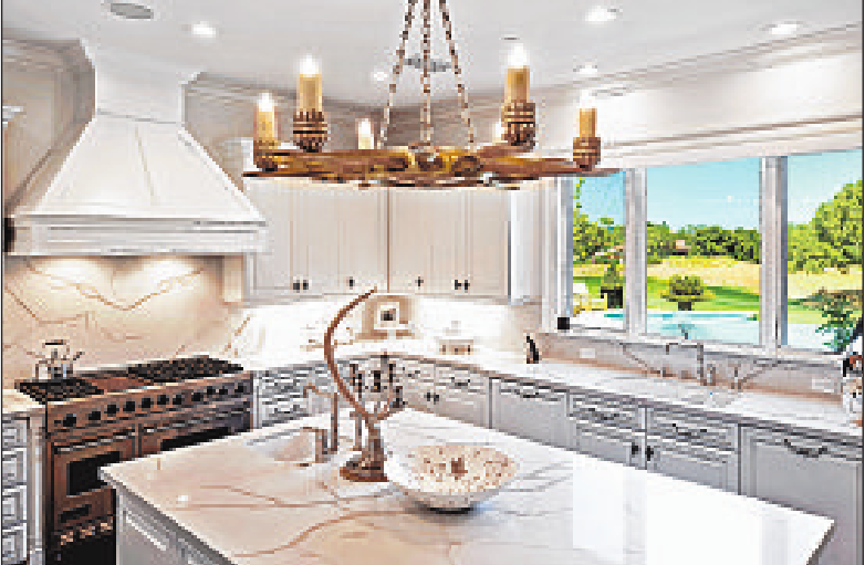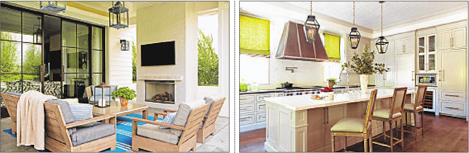 outdoor fire pit. A wide island/bar anchors the chef’s kitchen. At