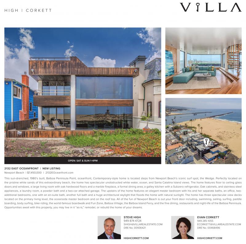 EVAN CORKETT 949 285 1055 ECORKETT@VILLAREALESTATE.COM DRE No. 00468496