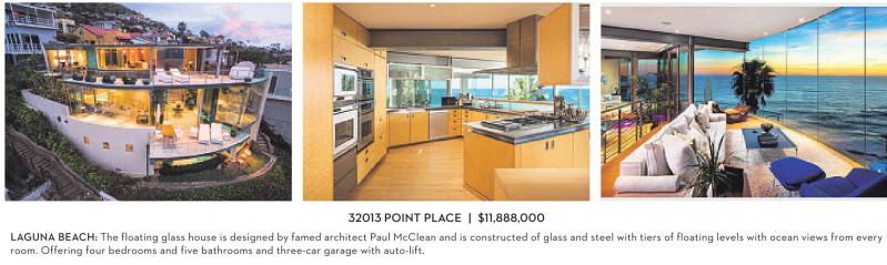 32013 POINT PLACE | $11,888,000 LAGUNA BEACH: The floating glass house is designed by famed architect Paul McClean and is constructed of glass and steel with tiers of floating levels with ocean views from every room. Offering four bedrooms and five bathrooms and three-car garage with auto-lift.