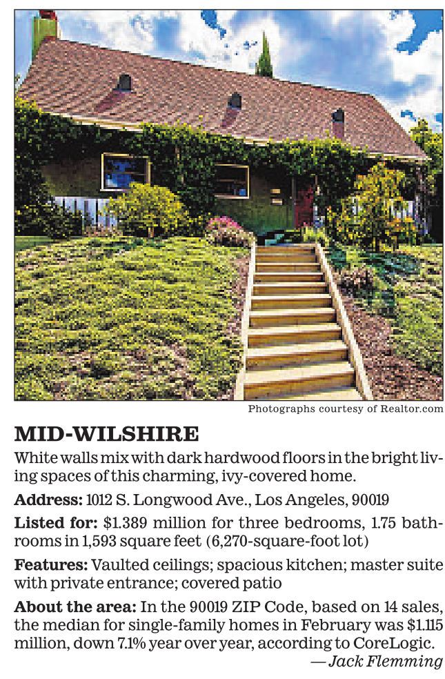 About the area: In the 90019 ZIP Code, based on 14 sales, the median for single-family homes in February was $1.115 million, down 7.1% year over year, according to CoreLogic.