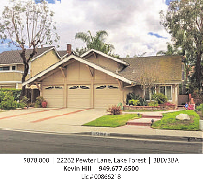 $878,000 | 22262 Pewter Lane,LakeForest | 3BD/3BA Kevin Hill | 9