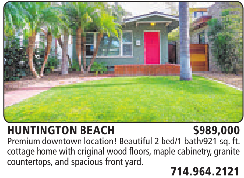 HUNTINGTON BEACH $989,000 Premium downtown location! Beautiful 2bed/1 bath/921 sq. ft. cottage home with original wood floors,maple cabinetry,granite countertops, and spacious front yard.