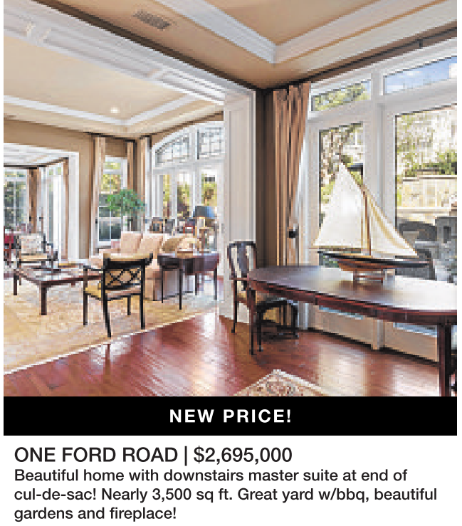 ONE FORD ROAD | $2,695,000 Beautiful home with downstairs master suite at end of cul-de-sac! Nearly 3,500 sq ft. Great yard w/bbq, beautiful gardens and fireplace!