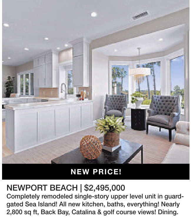 NEWPORT BEACH | $2,495,000 Completely remodeled single-story upper level unit in guardgated Sea Island! All new kitchen, baths, everything! Nearly 2,800 sq ft, Back Bay, Catalina & golf course views! Dining.