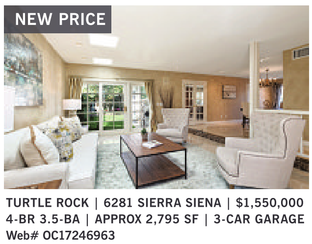 TURTLE ROCK | 6281 SIERRA SIENA | $1,550,000 4-BR 3.5-BA | APPROX 2,795 SF | 3-CAR GARAGE Web# OC17246963