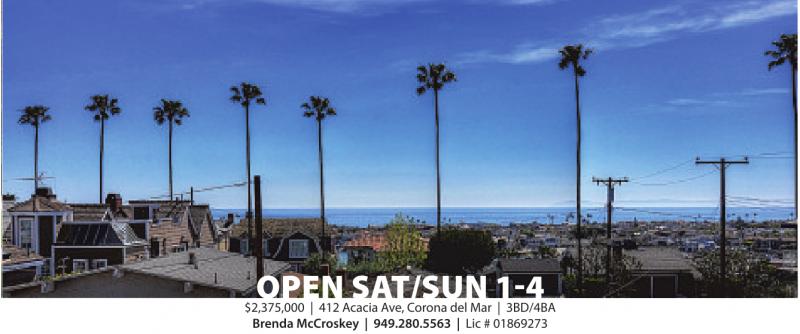 $2,375,000 | 412 Acacia Ave, Corona del Mar | 3BD/4BA Brenda McCroskey | 949.280.5563 | Lic #01869273