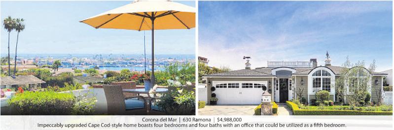Corona del Mar | 630 Ramona | $4,988,000 Impeccably upgraded Cape Cod-style home boasts four bedrooms and four baths with an office that could be utilized as a fifth bedroom.
