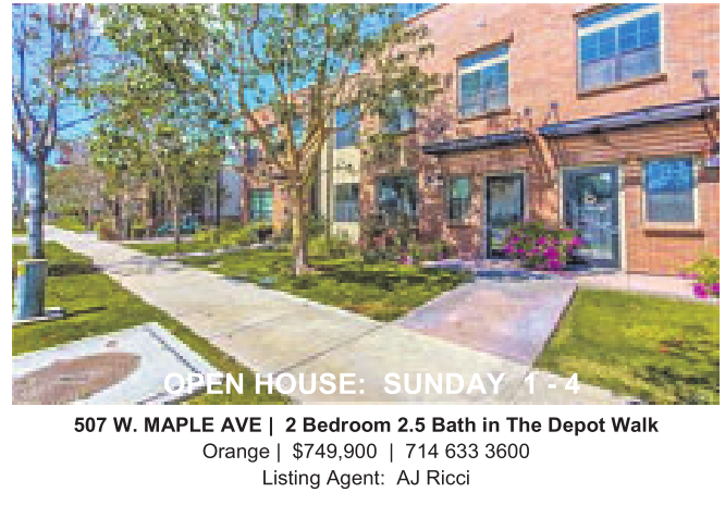 507 W. MAPLE AVE | 2 Bedroom 2.5 Bath inThe Depot Walk Orange | $749,900 | 714 633 3600 Listing Agent: AJRicci