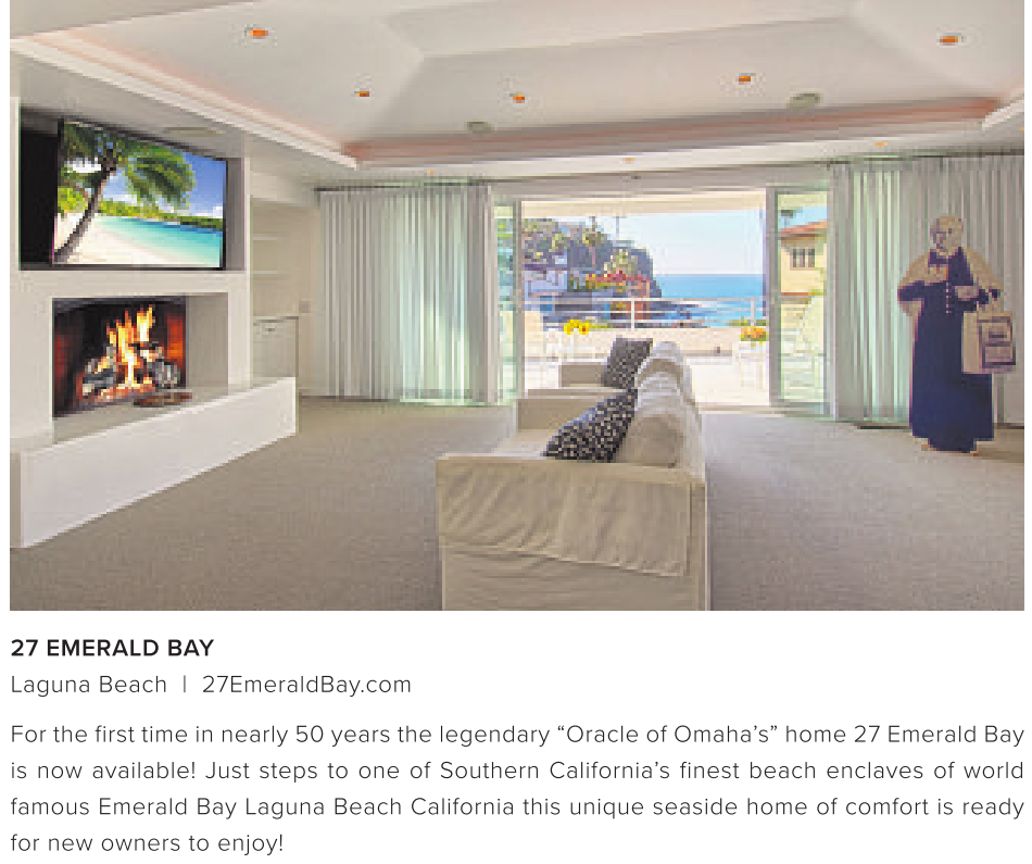 For the first time in nearly 50 years the legendary “Oracle of Omaha’s” home 27 Emerald Bay is now available! Just steps to one of Southern California’s finest beach enclaves of world famous Emerald Bay Laguna Beach California this unique seaside home of comfort is ready for new owners to enjoy!