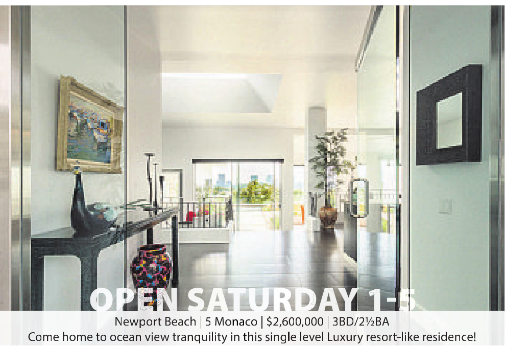 Newport Beach | 5 Monaco | $2,600,000 | 3BD/2½BA Come home to ocean view tranquility in thissinglelevelLuxuryresort-likeresidence!