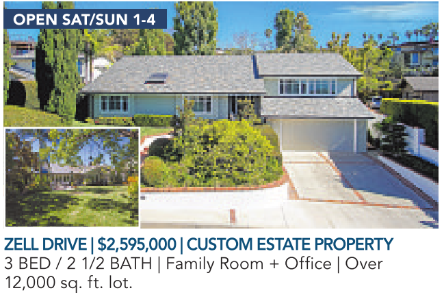 ZELLDRIVE|$2,595,000 |CUSTOMESTATEPROPERTY 3 BED / 2 1/2 BATH | Family Room + Office | Over 12,000 sq. ft. lot.