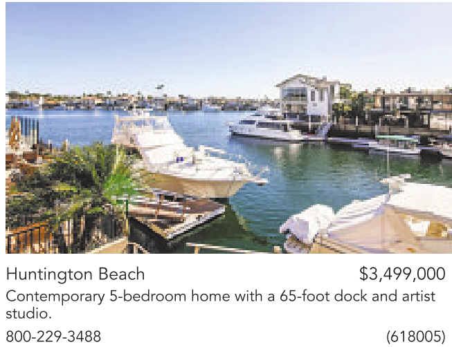 Huntington Beach $3,499,000 Contemporary 5-bedroom home with a 65-foot dock and artist studio.