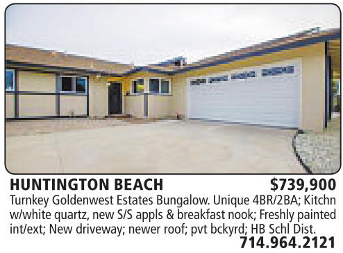 HUNTINGTON BEACH $739,900 Turnkey GoldenwestEstates Bungalow.Unique4BR/2BA;Kitchn w/white quartz,new S/S appls &breakfast nook; Freshly painted int/ext;New driveway; newer roof; pvt bckyrd; HB Schl Dist.