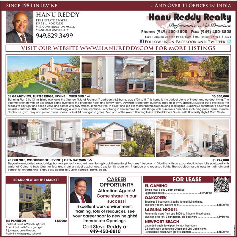 51 GRANDVIEW, TURTLE RIDGE, IRVINE | OPEN SUN 1-4 $5,300,000 Stunning Plan 3 La Cima Estate overlooks the Orange Riviera! Features 7 bedrooms,6.5 baths, app 6728 sq ft !This home is the perfect blend of indoor and outdoor living. The gourmet kitchen with an expansive island overlooks the breakfast nook and family room. Downstairs bedroom currently used as a gym. Spacious Master Suite overlooks the expansive city light and ocean views and comes with cozy retreat, immense walk-in closet and spa-like master bathroom including soaking tub .Expansive entertainer’s backyard includes outdoor BBQ, & custom covered loggia with a stone fireplace. Enjoy living in The Summit at Turtle Ridge with numerous amenities including pools, spas, theater, clubhouse, gym, play and picnic areas, scenic trails & 24 hour guard gates. Be a part of the Award Winning Irvine Unified School District with University High & Vista Verde.