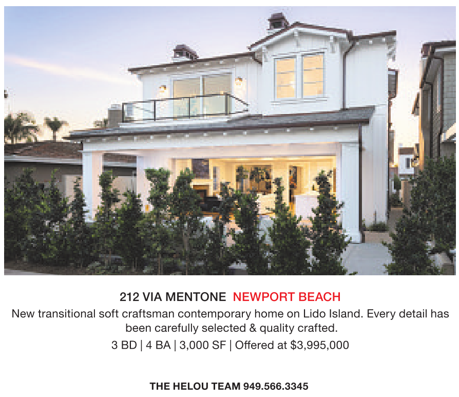 212 VIA MENTONE NEWPORT BEACH New transitional soft craftsman contemporary home on Lido Island. Every detail has been carefully selected & quality crafted.
