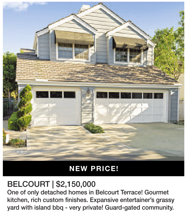 BELCOURT | $2,150,000 One of only detached homes in Belcourt Terrace! Gourmet kitchen, rich custom finishes. Expansive entertainer’s grassy yard with island bbq - very private! Guard-gated community.