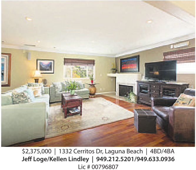 $2,375,000 | 1332 Cerritos Dr,Laguna Beach | 4BD/4BA Jeff Loge/KellenLindley | 949.212.5201/949.633.0936 Lic #00796807