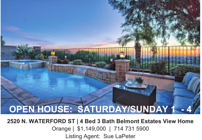 2520 N.WATERFORD ST |4Bed 3Bath Belmont Estates View Home Orange | $1,149,000 | 714 731 5900 Listing Agent: Sue LaPeter