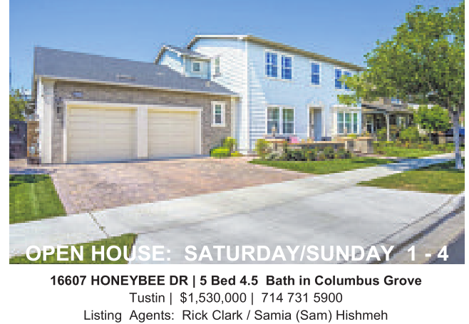 16607 HONEYBEE DR |5Bed 4.5 Bath in Columbus Grove Tustin | $1,530,000 | 714 731 5900 Listing Agents: Rick Clark /Samia (Sam) Hishmeh