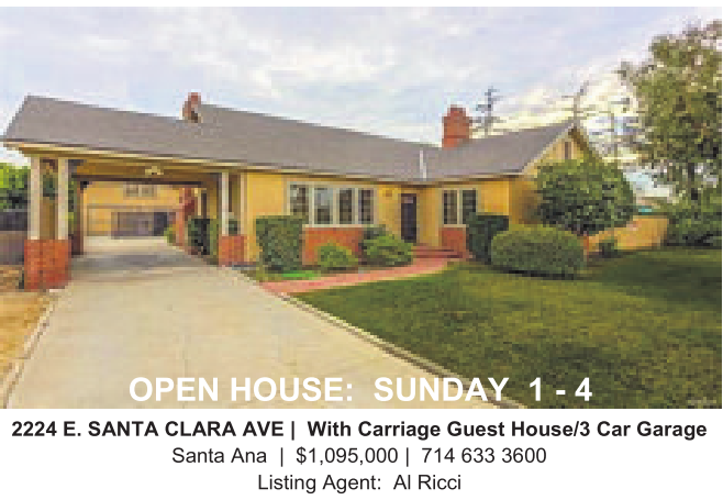 2224 E. SANTA CLARA AVE | With Carriage Guest House/3 Car Garage Santa Ana | $1,095,000 | 714 633 3600 Listing Agent: AlRicci