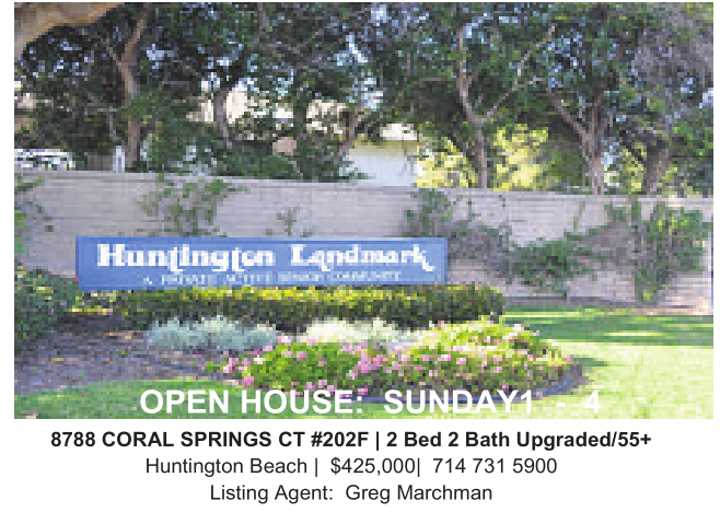 8788 CORAL SPRINGS CT#202F |2Bed 2Bath Upgraded/55+ Huntington Beach | $425,000| 714 731 5900 Listing Agent: Greg Marchman