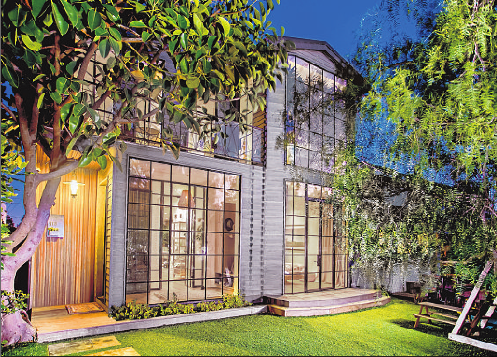 Designer Kim Gordon used high ceilings and screenless, steelframed windows to flood the clean-lined house with natural light and garden views. Forwardthinking building materials such as recycled timber and Richlite, a durable composite made from resin-infused paper, feature prominently in the design.