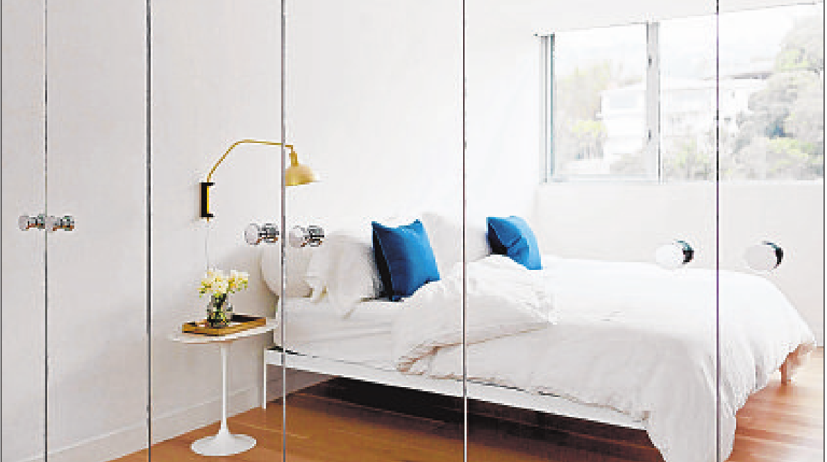 For a 1,060-square-foot onebedroom, one-bathroom unit at Shoreham Condos in West Hollywood, Lucie Ayres of 22 Interiors was able to get permission to turn part of a balcony into an indoor area, which added 40 square feet of space to the master bedroom. She theorized that the major change was approved because the balcony faced the hills and not the street.
