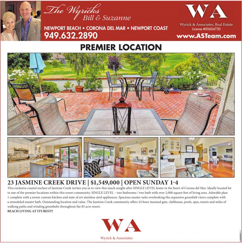 This exclusive coastal enclave of Jasmine Creek invites you in to view this much sought after SINGLE LEVEL home in the heart of Corona del Mar. Ideally located lot