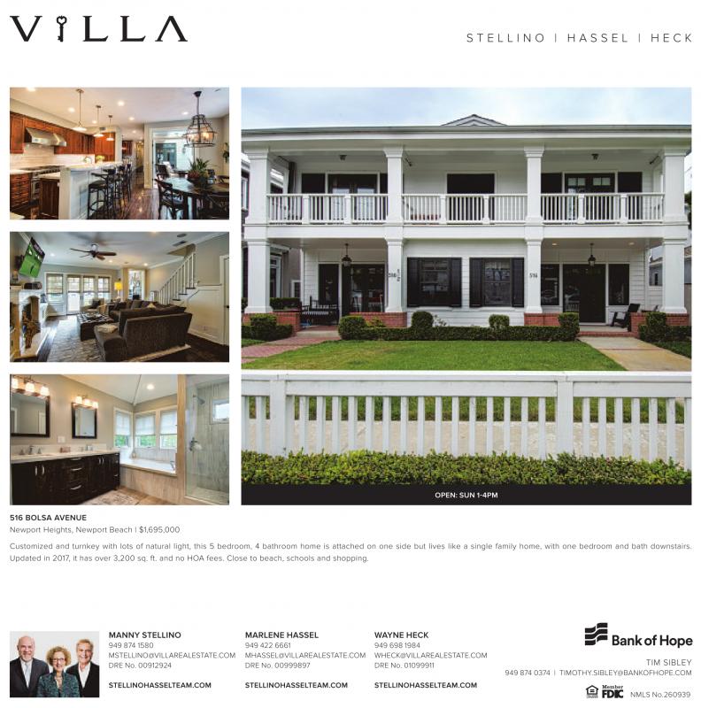 WAYNE HECK 949 698 1984 WHECK@VILLAREALESTATE.COM DRE No. 01099911 STELLINOHASSELTEAM.COM