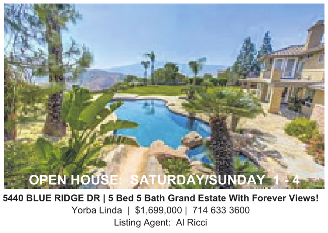 Yorba Linda | $1,699,000 | 714 633 3600 Listing Agent: Al Ricci