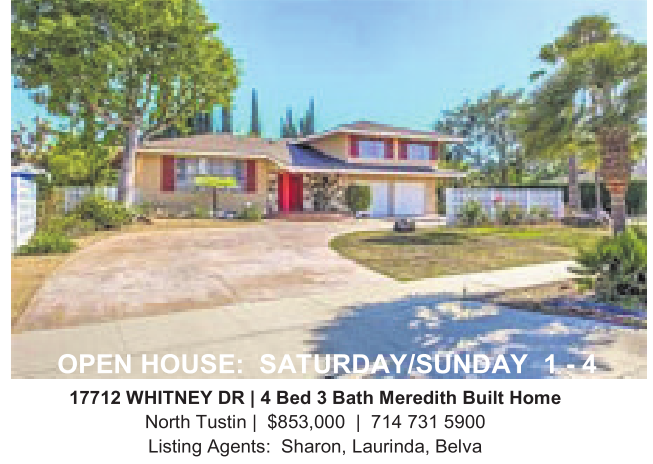 17712 WHITNEY DR|4Bed 3Bath Meredith Built Home North Tustin | $853,000 | 714 731 5900 Listing Agents: Sharon, Laurinda, Belva