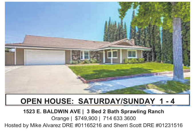 1523 E.BALDWIN AVE | 3Bed 2Bath Sprawling Ranch Orange | $749,900 | 714 633 3600 Hosted by Mike Alvarez DRE #01165216 and Sherri Scott DRE #01231516