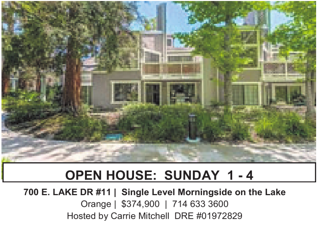 700 E. LAKE DR #11 | Single Level Morningside onthe Lake Orange | $374,900 | 714 633 3600 Hosted by Carrie Mitchell DRE #01972829