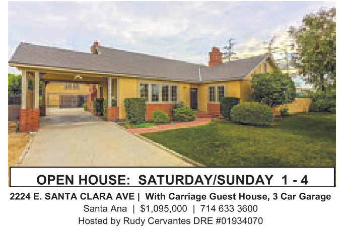 2224 E. SANTA CLARA AVE | With Carriage Guest House, 3Car Garage Santa Ana | $1,095,000 | 714 633 3600 Hosted by Rudy Cervantes DRE #01934070