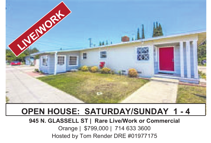 945 N.GLASSELL ST | Rare Live/Work or Commercial Orange | $799,000 | 714 633 3600 Hosted by Tom Render DRE #01977175