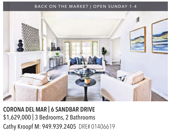 CORONA DEL MAR | 6SANDBAR DRIVE $1,629,000 | 3Bedrooms, 2Bathrooms