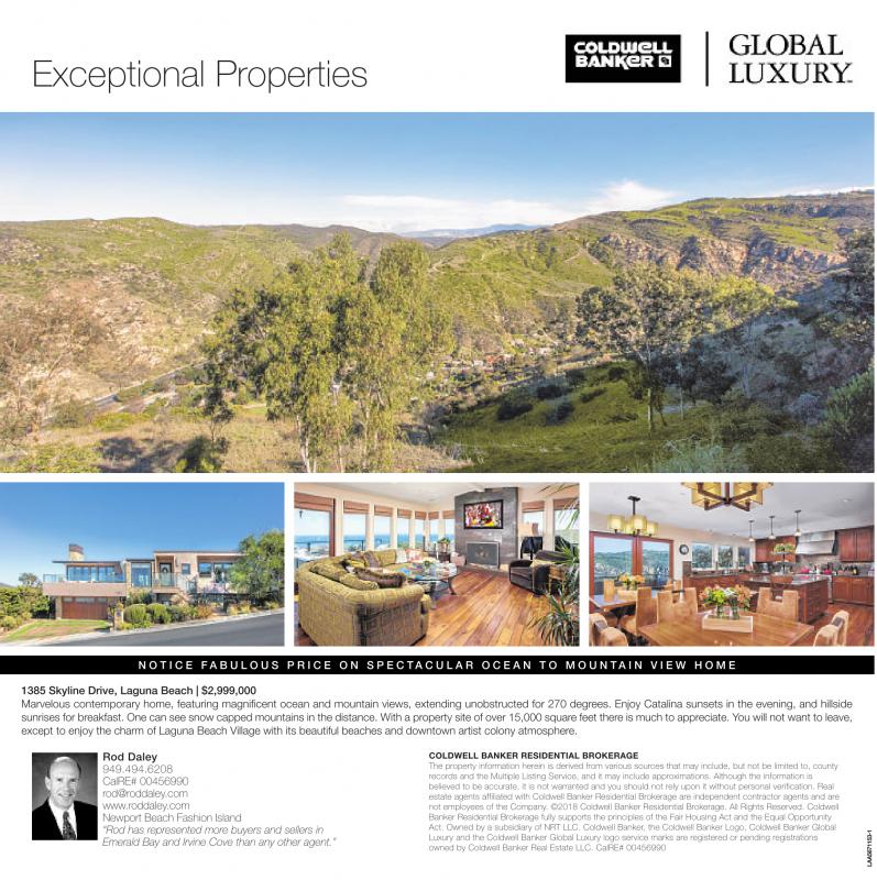 Rod Daley 949.494.6208 CalRE# 00456990 rod@roddaley.com www.roddaley.com Newport Beach Fashion Island “Rod has represented more buyers and sellers in Emerald Bay and Irvine Cove than any other agent.”