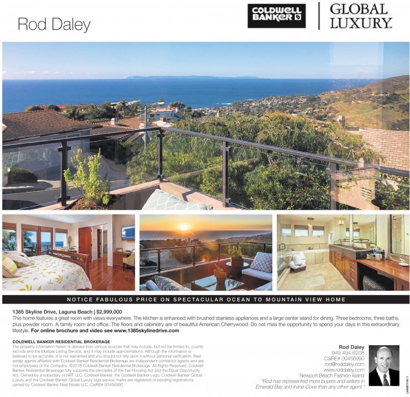 Rod Daley 949.494.6208 CalRE# 00456990 rod@roddaley.com www.roddaley.com Newport Beach Fashion Island “Rod has represented more buyers and sellers in Emerald Bay and Irvine Cove than any other agent.”