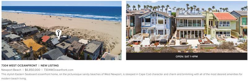 7304 WEST OCEANFRONT | NEW LISTING Newport Beach | $6,850,000 | 7304WOceanfront.com This stylish Eastern Seaboard oceanfront home, onthe picturesque sandy beaches of West Newport, is steeped in Cape Cod character and charm and brimming with all of the most desired amenities for modern beach living.