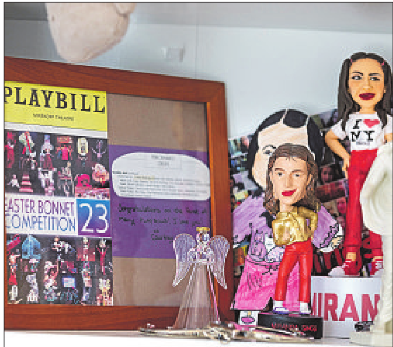 Included in this array of art and memorabilia is a Mona Lisa-inspired drawing of Miranda with awkward bangs, a “huge, terrifying” Miranda puppet and papiermâché Miranda heads.