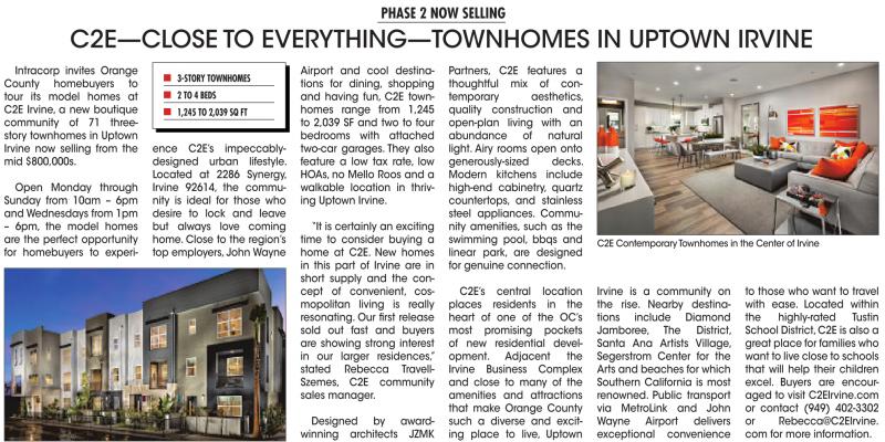 C2E—CLOSE TO EVERYTHING—TOWNHOMES IN UPTOWN IRVINE