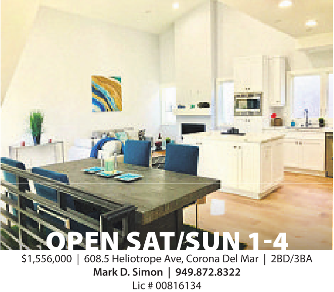 $1,556,000 | 608.5 Heliotrope Ave, Corona Del Mar | 2BD/3BA Mark D. Simon | 949.872.8322 Lic #00816134