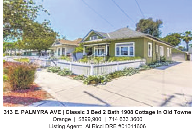 313 E. PALMYRA AVE |Classic 3Bed 2Bath 1908 Cottage in Old Towne Orange | $899,900 | 714 633 3600 Listing Agent: AlRicci DRE #01011606