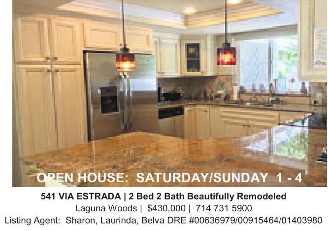 541 VIA ESTRADA |2Bed 2Bath Beautifully Remodeled Laguna Woods | $430,000 | 714 731 5900 Listing Agent: Sharon, Laurinda, Belva DRE #00636979/00915464/01403980