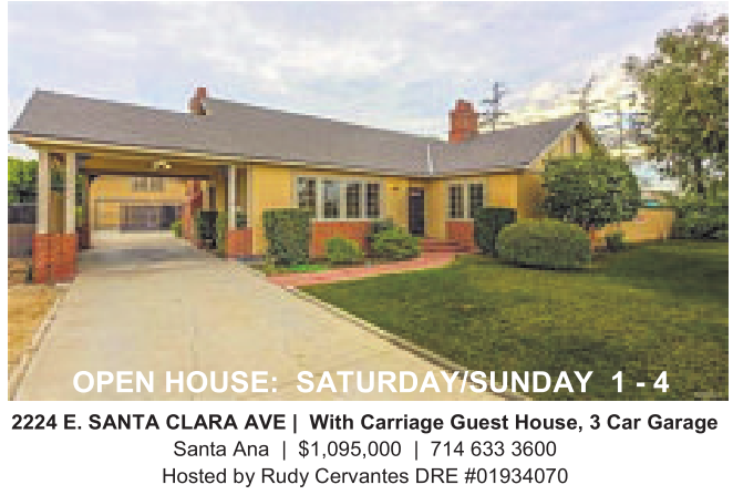 2224 E.SANTA CLARA AVE | With Carriage Guest House, 3Car Garage Santa Ana | $1,095,000 | 714 633 3600 Hosted by Rudy Cervantes DRE #01934070