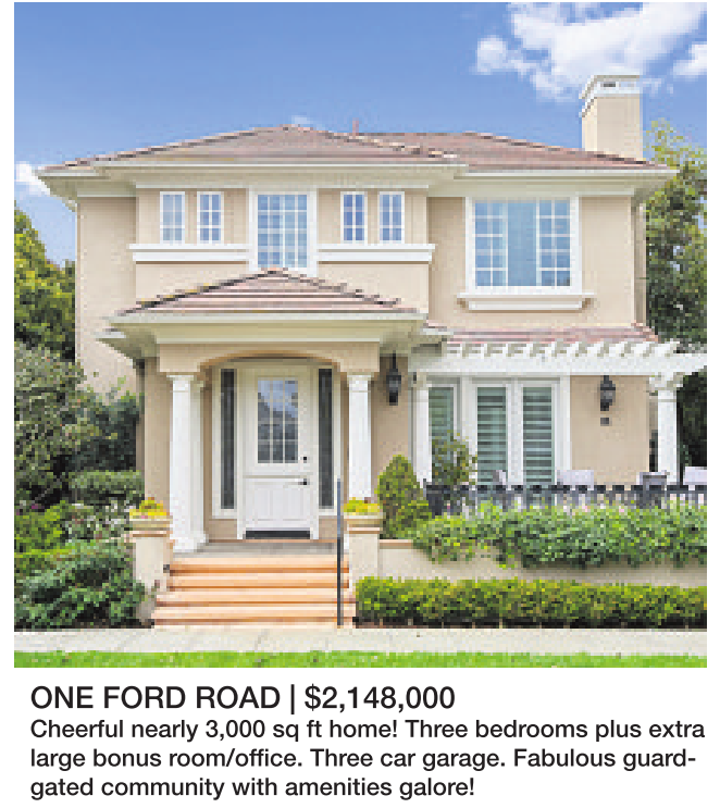 ONE FORD ROAD | $2,148,000 Cheerful nearly 3,000 sq ft home! Three bedrooms plus extra large bonus room/office. Three car garage. Fabulous guardgated community with amenities galore!